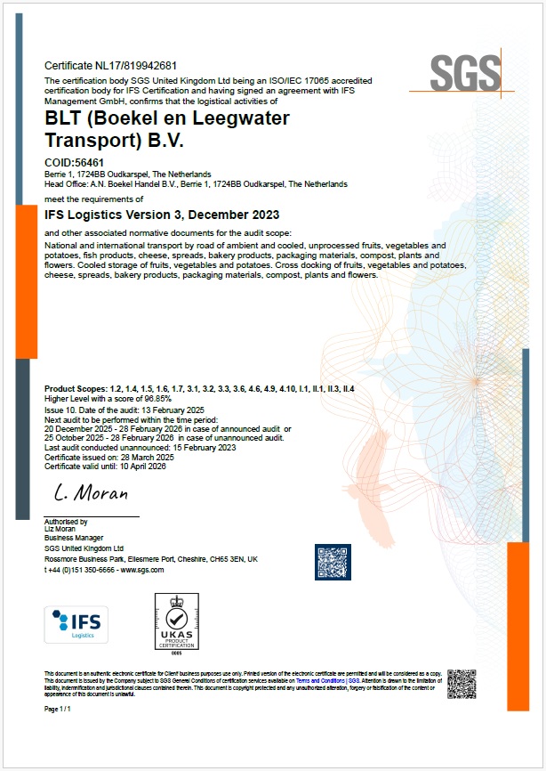 Sinds februari 2016 zijn wij IFS gecertificeerd. Hierdoor zijn wij in staat om de hoge kwaliteitseisen te waarborgen die ons bedrijf, maar ook de afnemer, stelt aan het product.